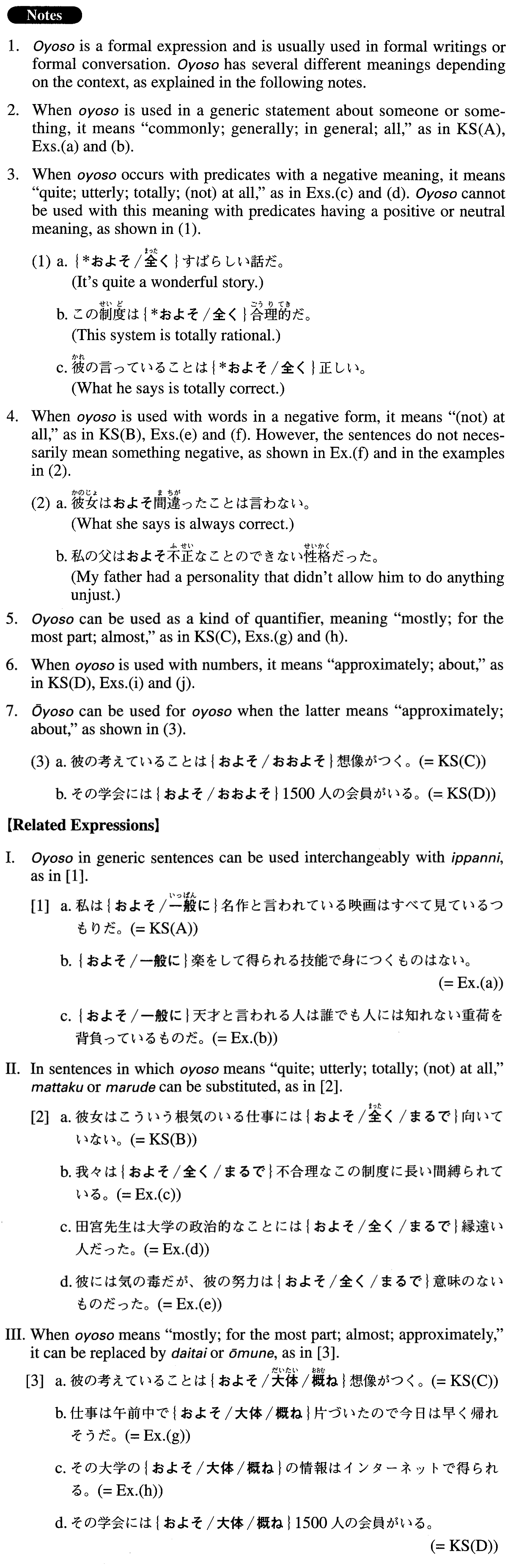 | (iv) およそ | {V/Adjective(い/な}/Nounだ} | |