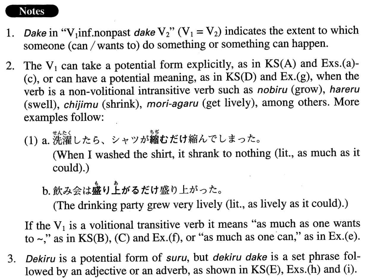| (i) V1 potential informal nonpast | だけV2 | Where V1=V2 |