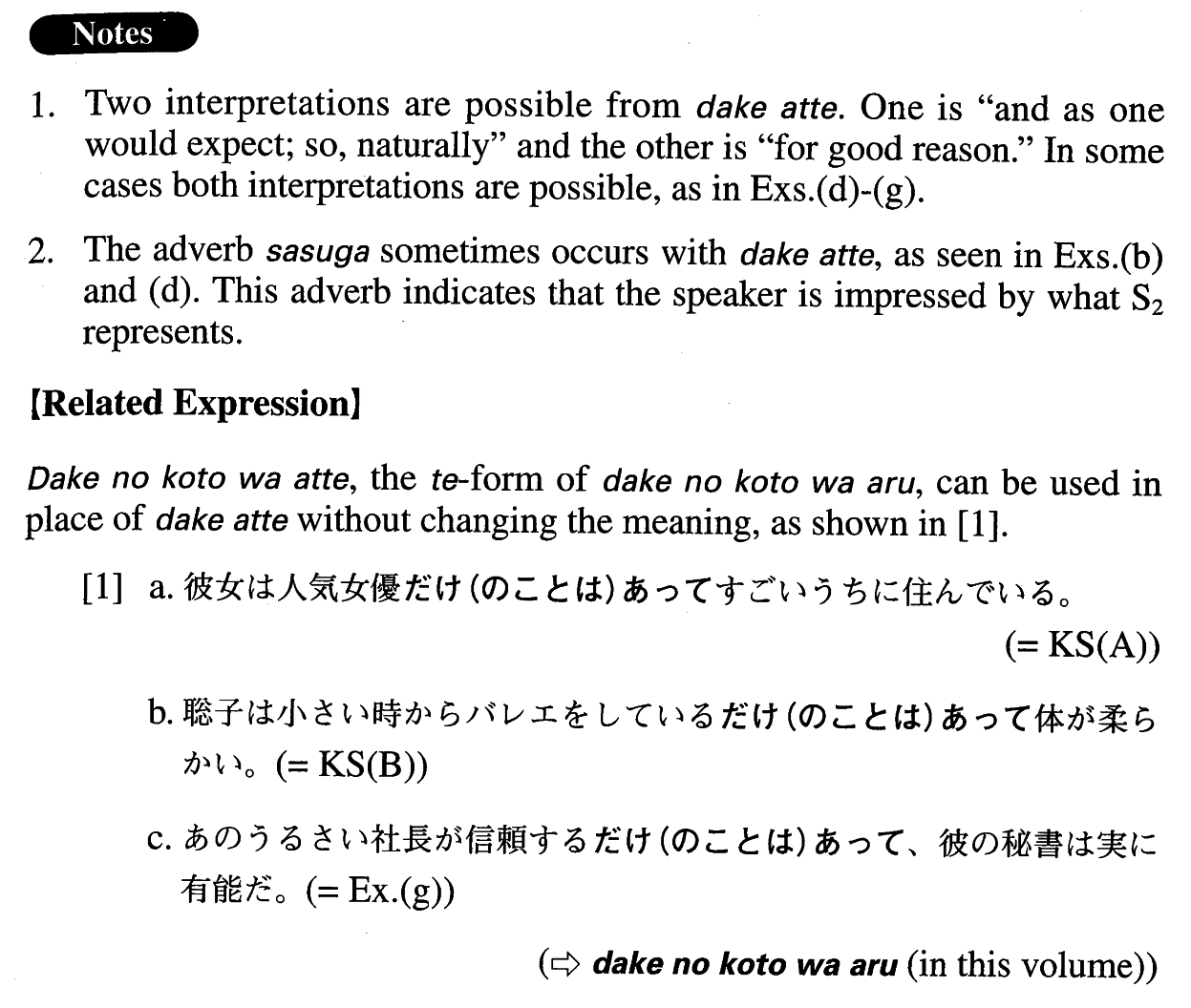 | (iii) Adjective な stem {な/だった} | だけあって | |
