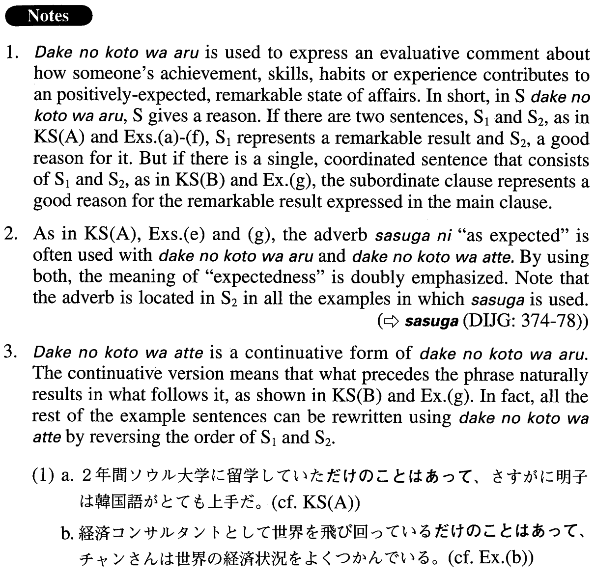 | (iii) Noun {Ø/だった} | だけのことはある | |