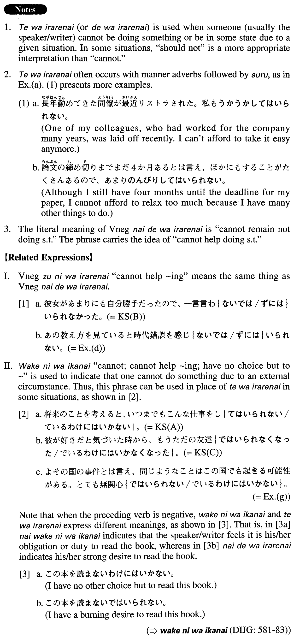 | (iii) {Adjectiveなstem/ Noun} | ではいられない | |