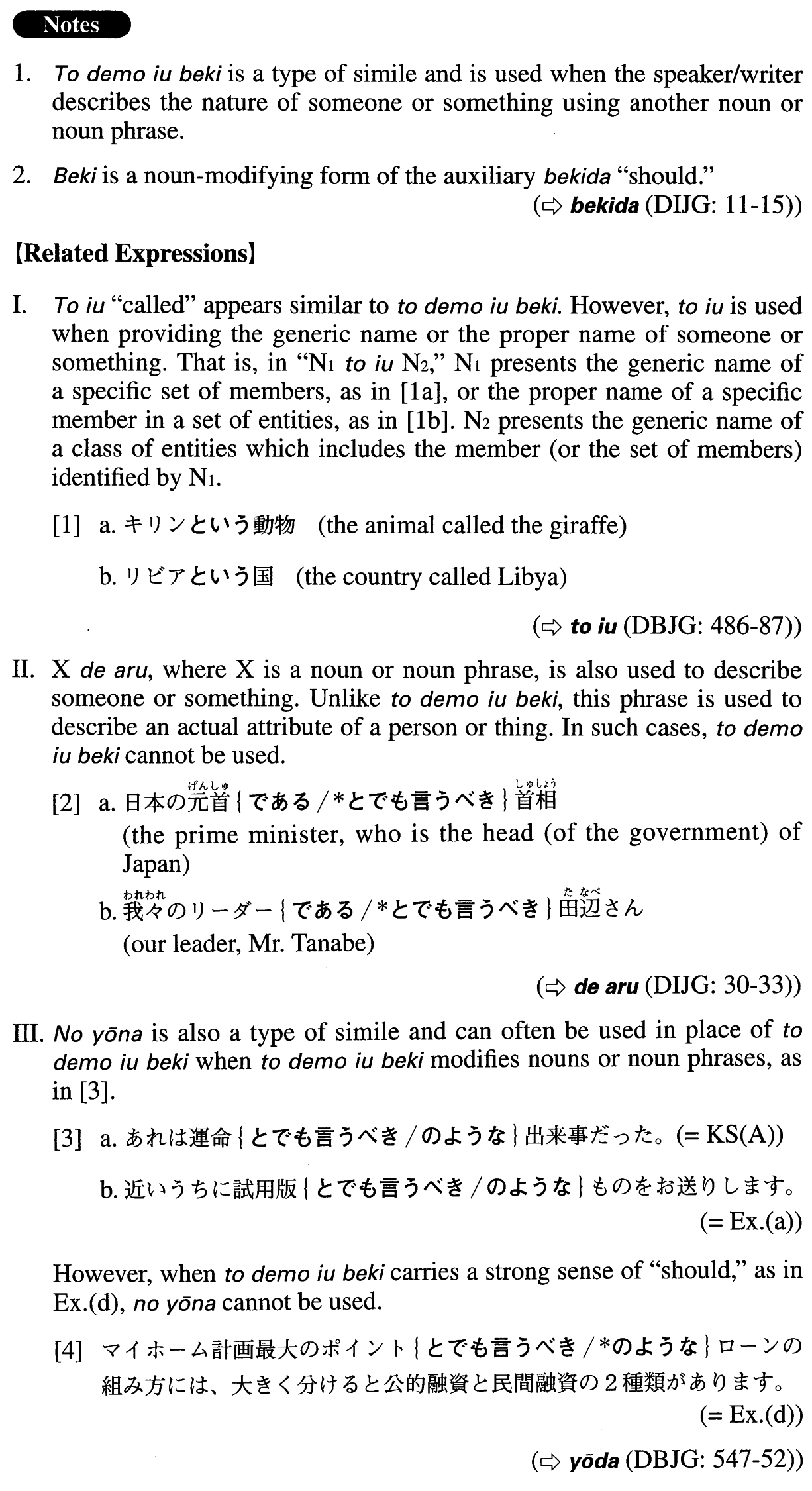 | (ii) Noun | とでも言うべき | |