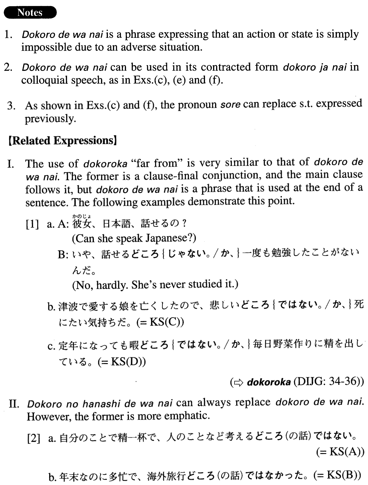 | (i) {V/Adjectiveい}informal nonpast | どころではない | |