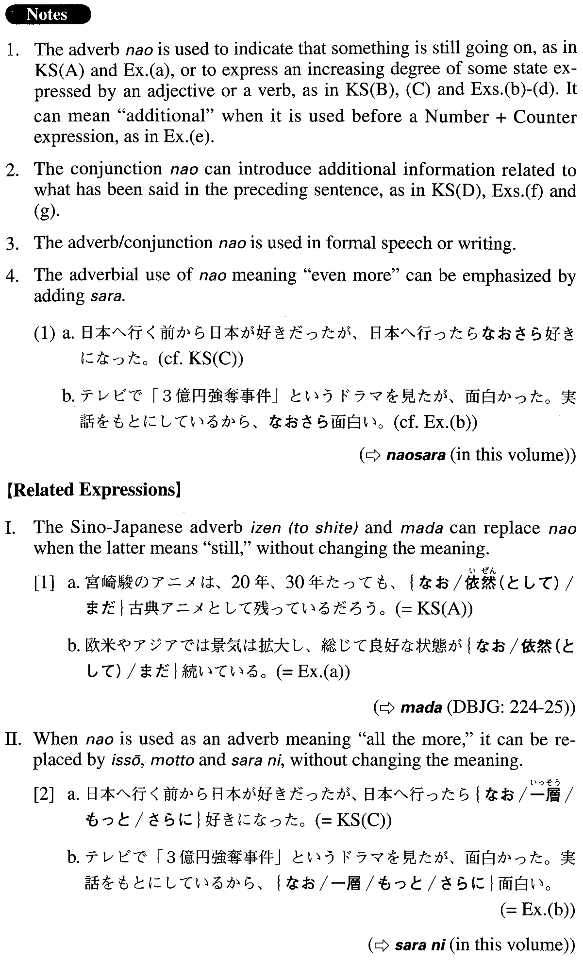 | (iii) なお | {Adjectiveいstemく /Adjectiveなstemに}(なる) | |