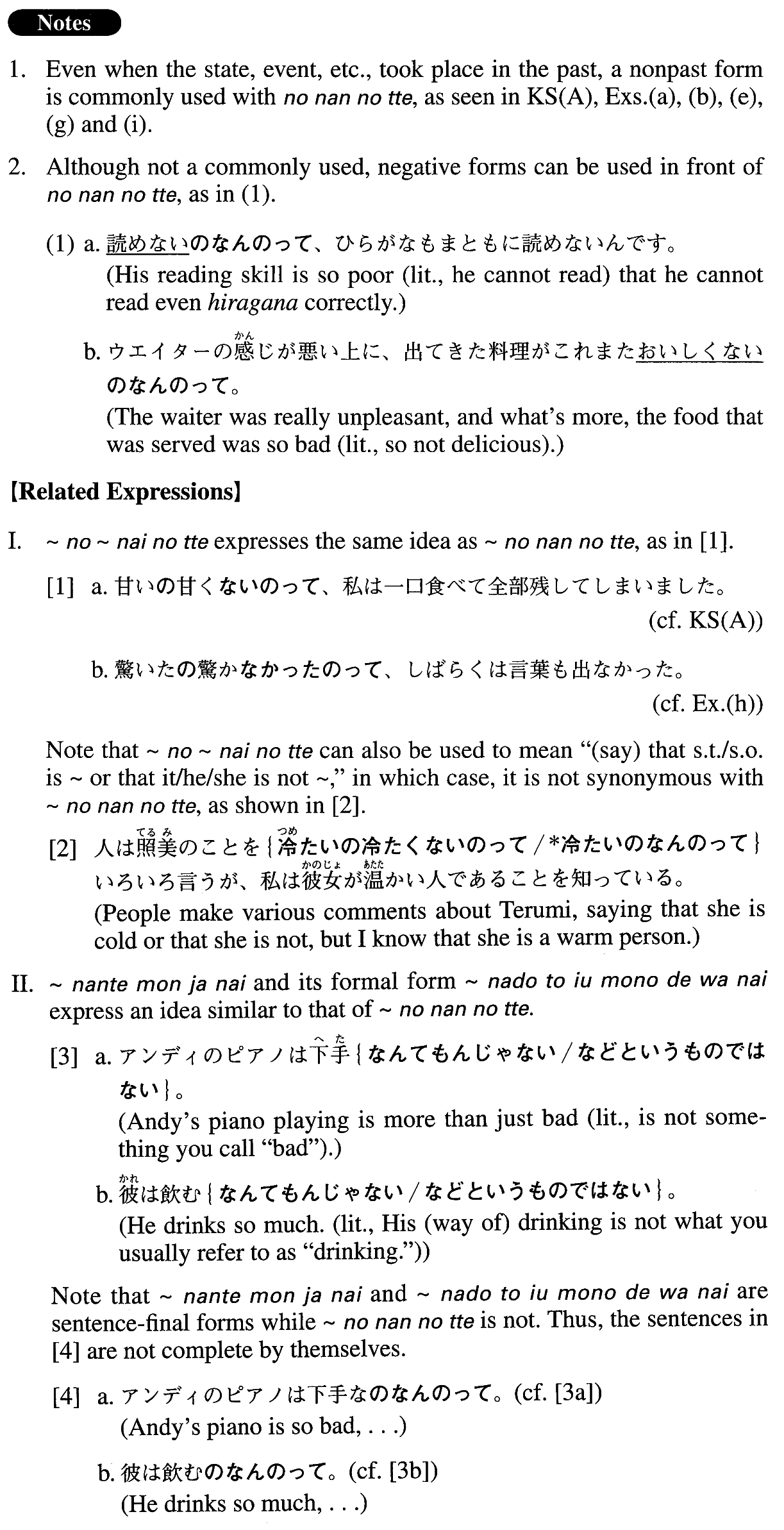 | (i) {V/Adjectiveい}informal | のなんのって | |