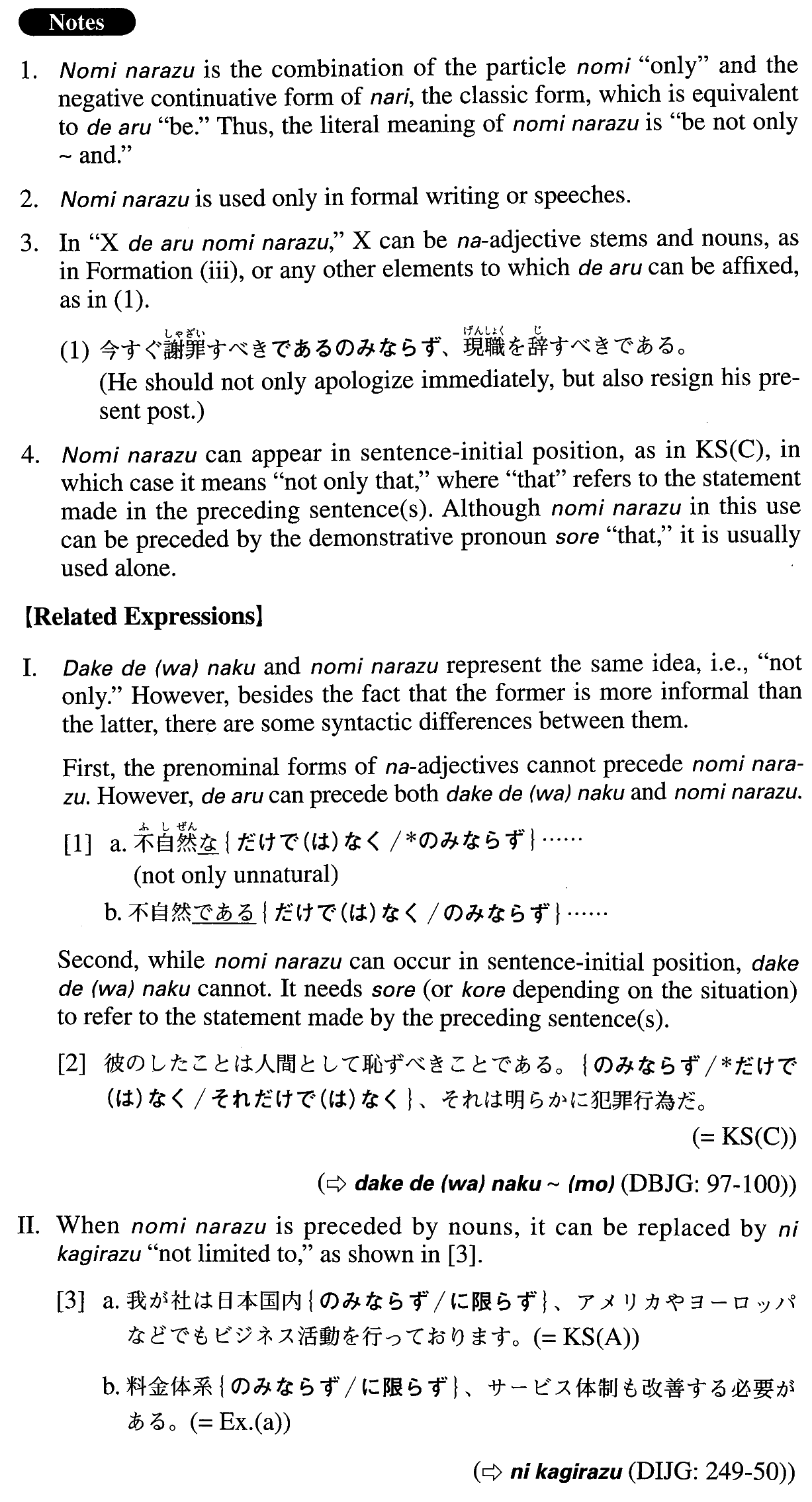 | (iii) {Adjectiveなstem/ Noun} | であるのみならず | |