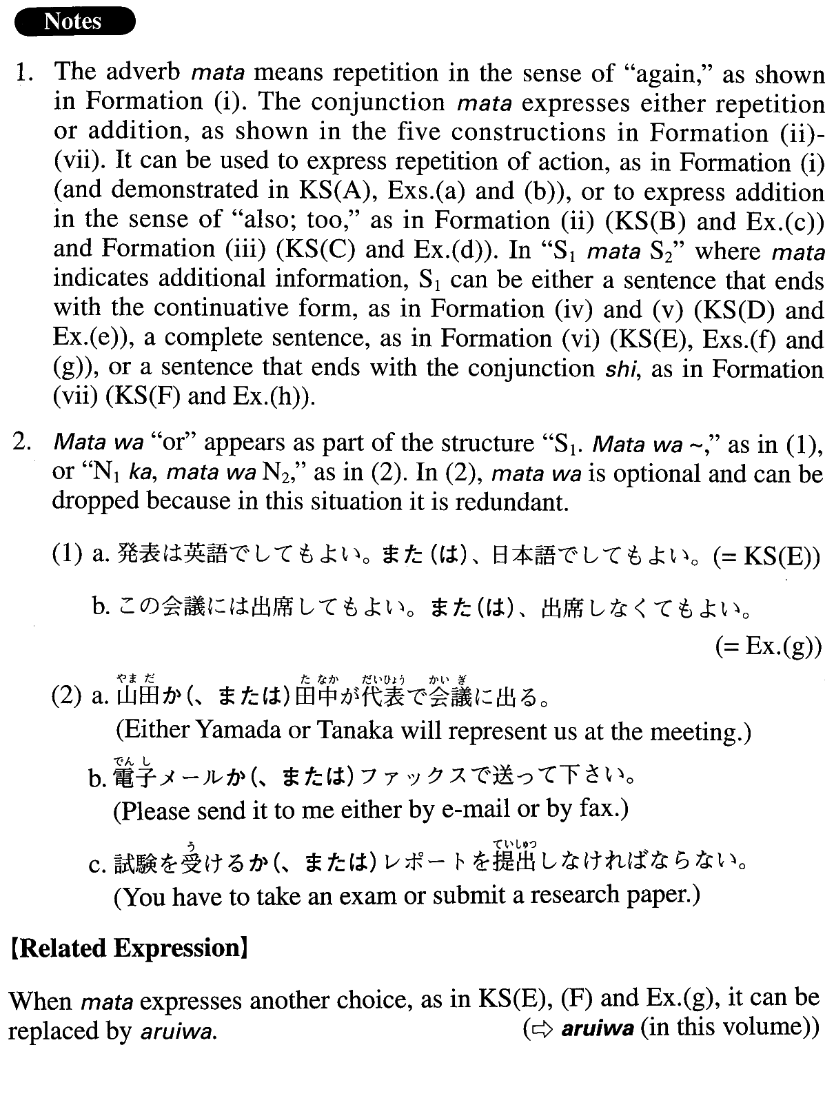 | (iv) ~{Vます/Adjectiveいstemく}、 | また、Sentence。 | [additional information] |