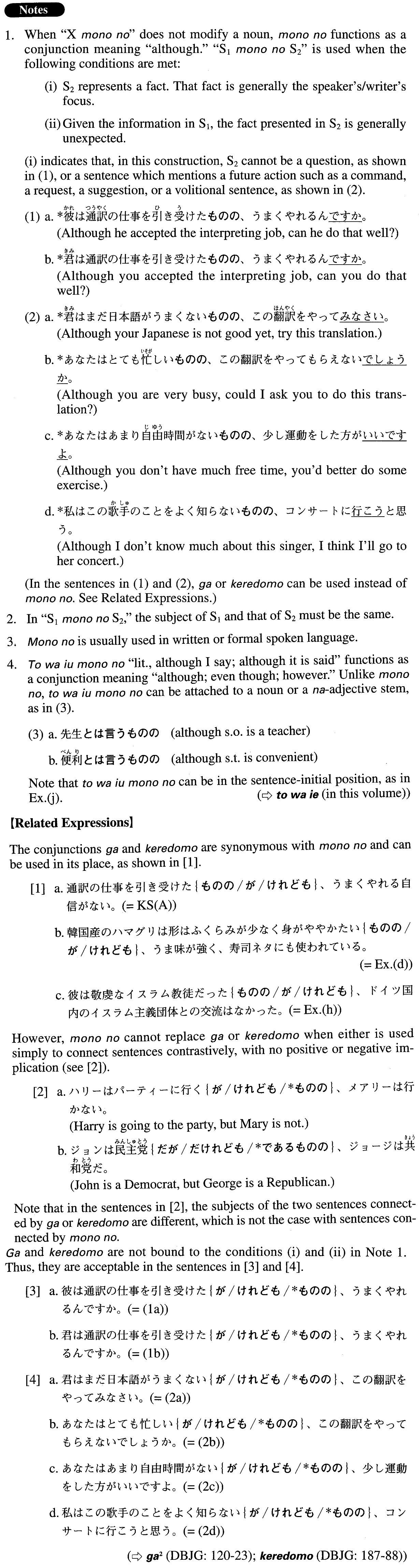 | (iii) Noun | {で(は)ある/だった/であった}ものの | |