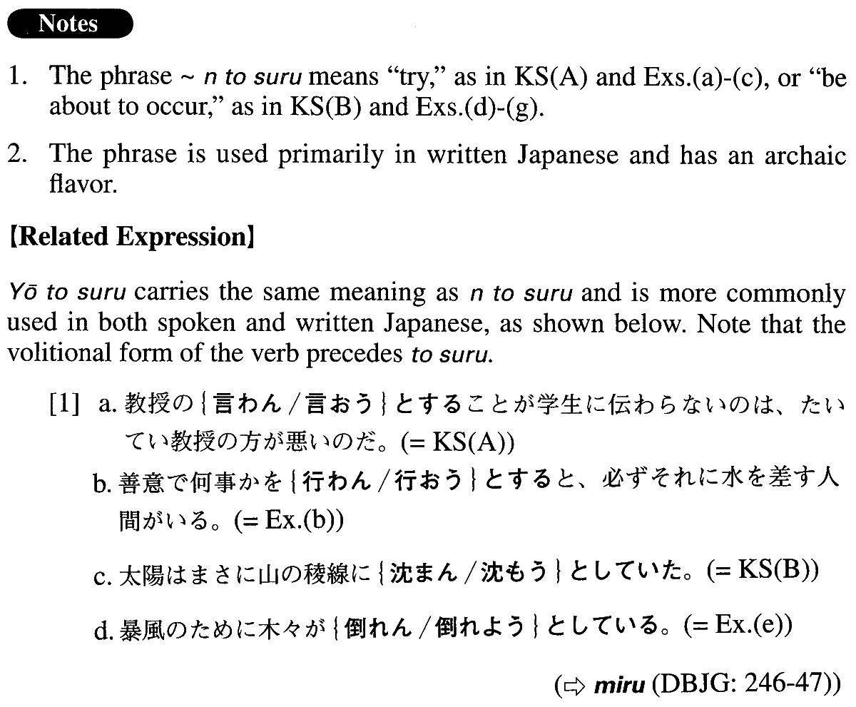 | Vnegative | んとする | Exception:する→せんとする |