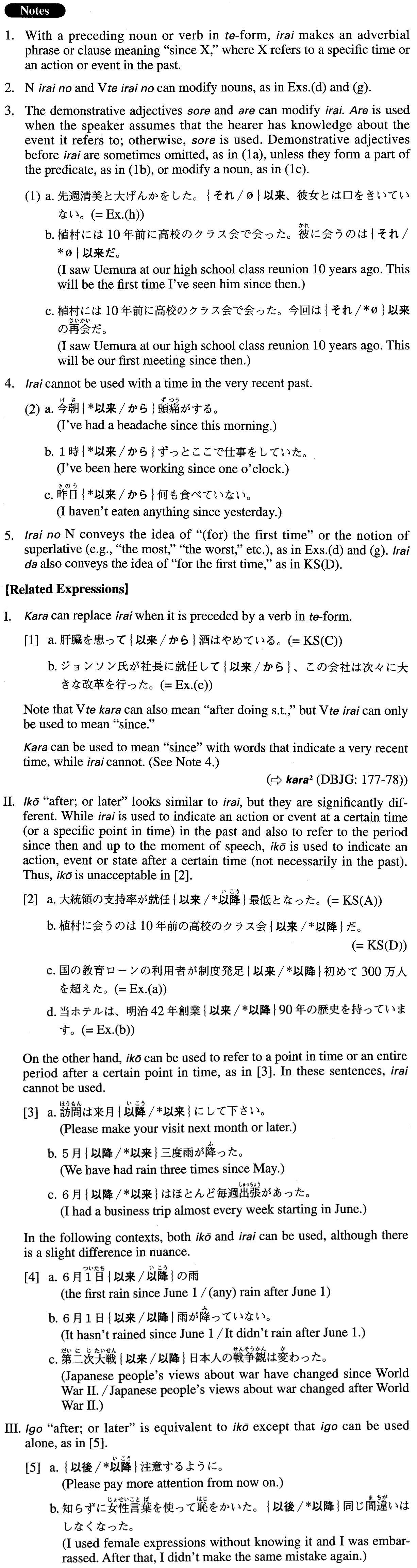 | (i) Noun | 以来 | Where Noun indicates an event or a specific time |