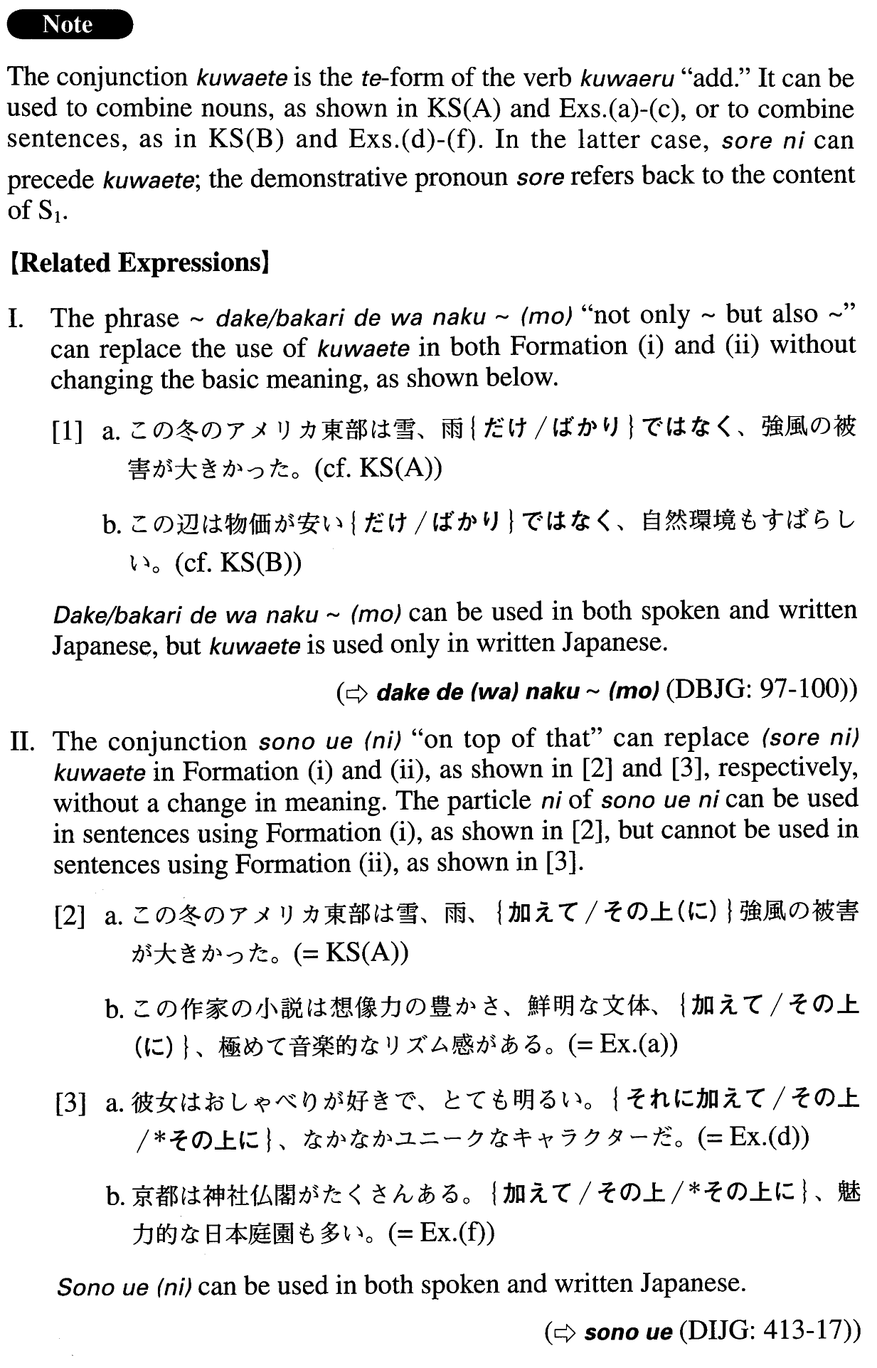 | (ii) Sentence1 (それに) | 加えてSentence2。 | |
