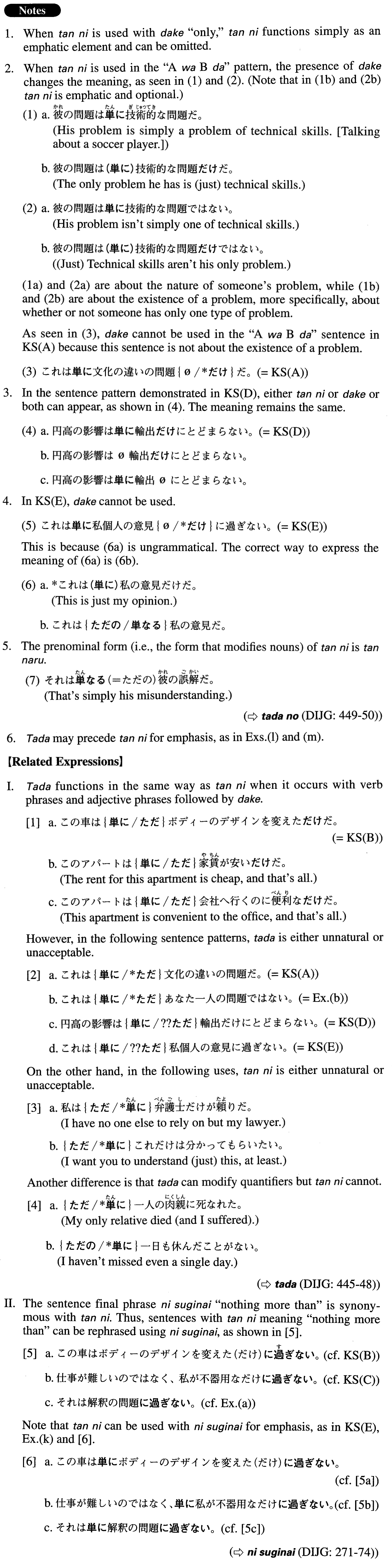 | (iii) 単に | Adjectiveなstem {な/である/だった/であった}だけ | |