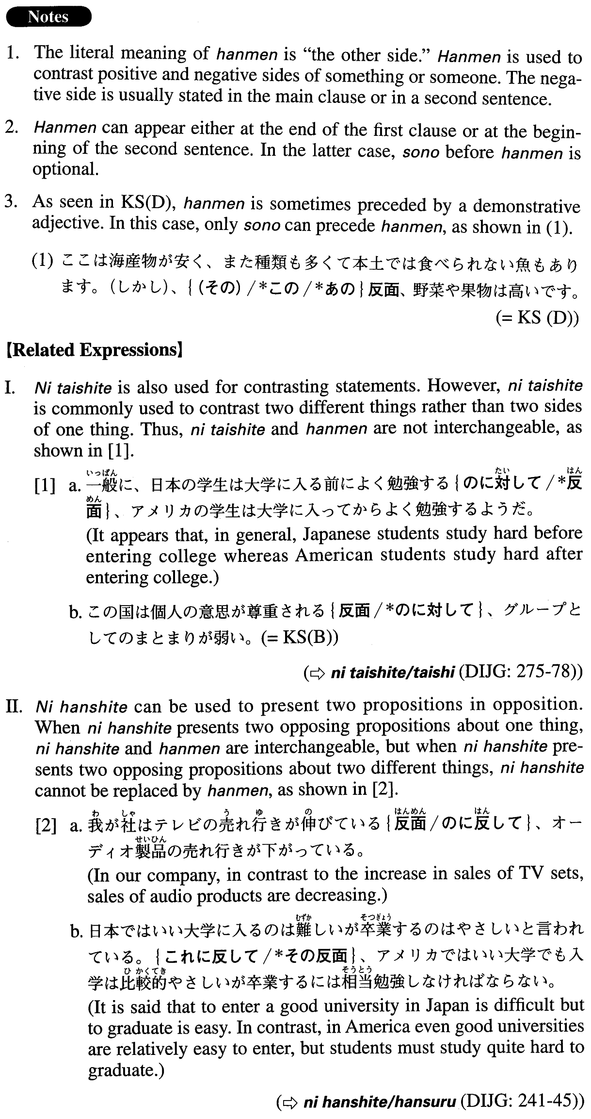 | (i) {V/Adjectiveい}Informal nonpast | 反面 | |