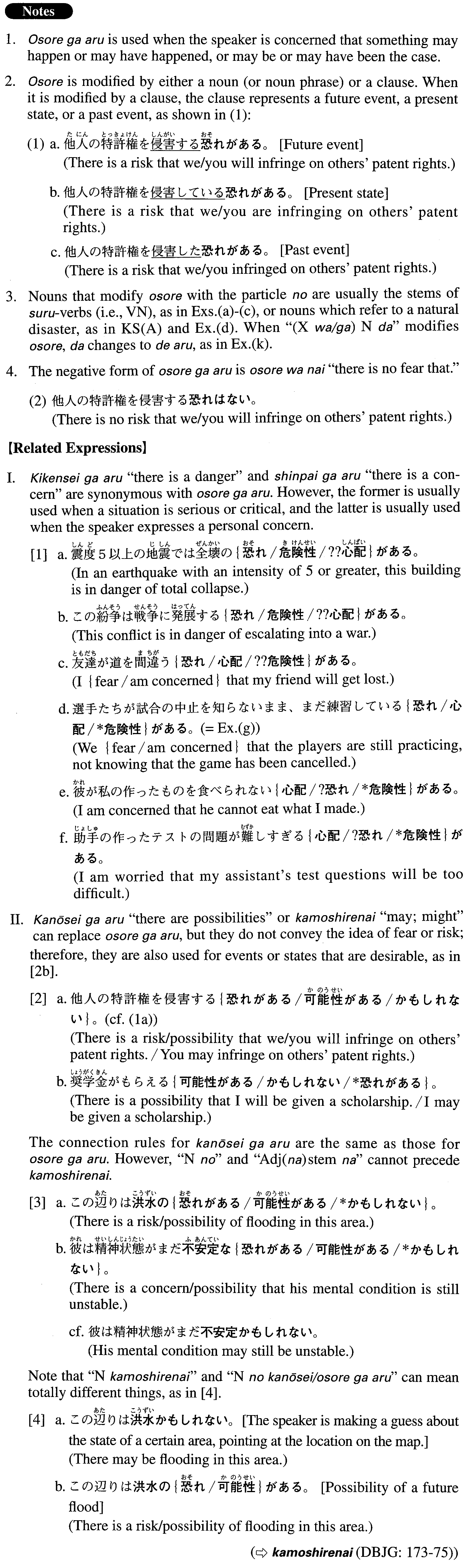 | (ii) {V/Adjectiveい}informal | 恐れがある | |