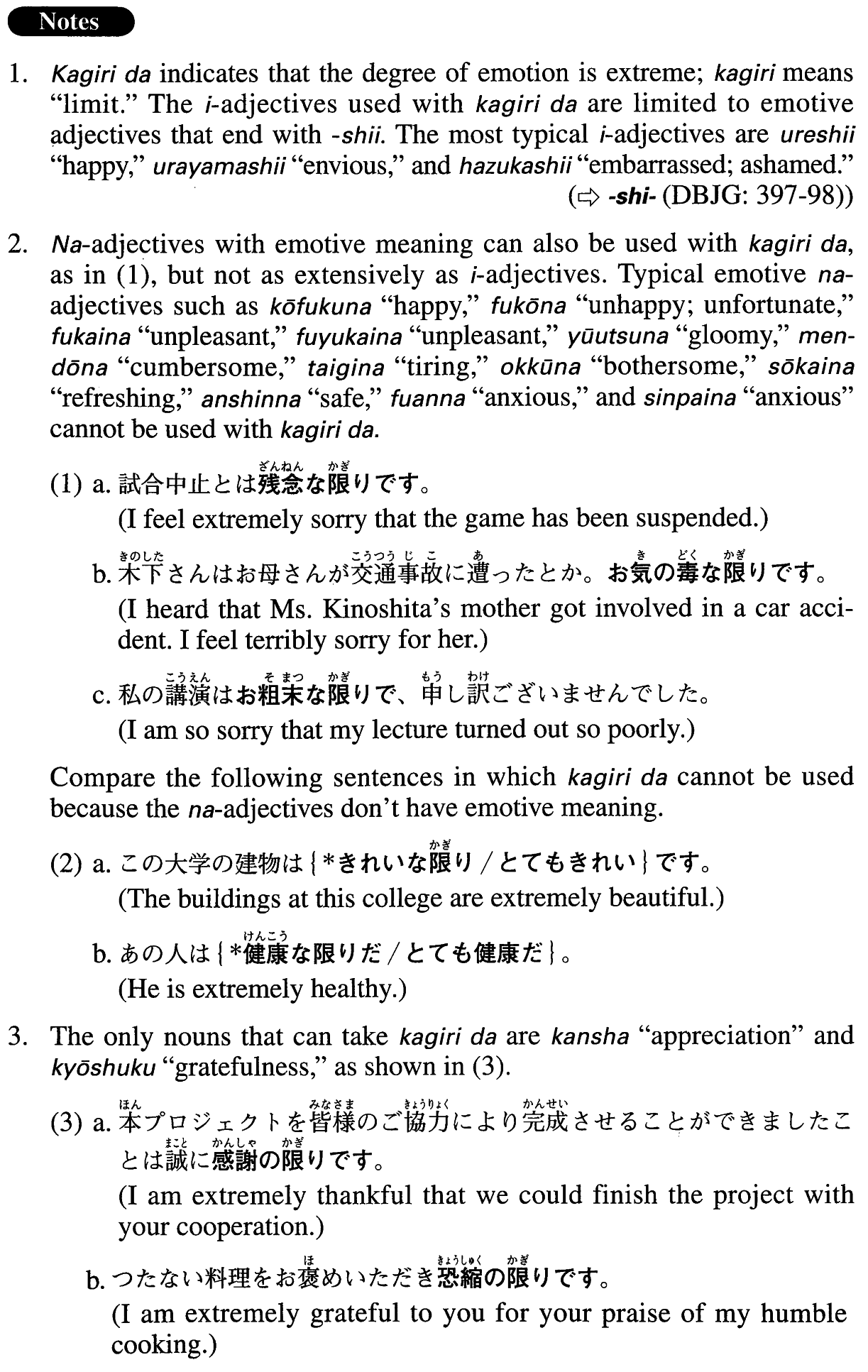| Adjective い informal nonpast | 限りだ | Where adjectiveい=emotive adjective |