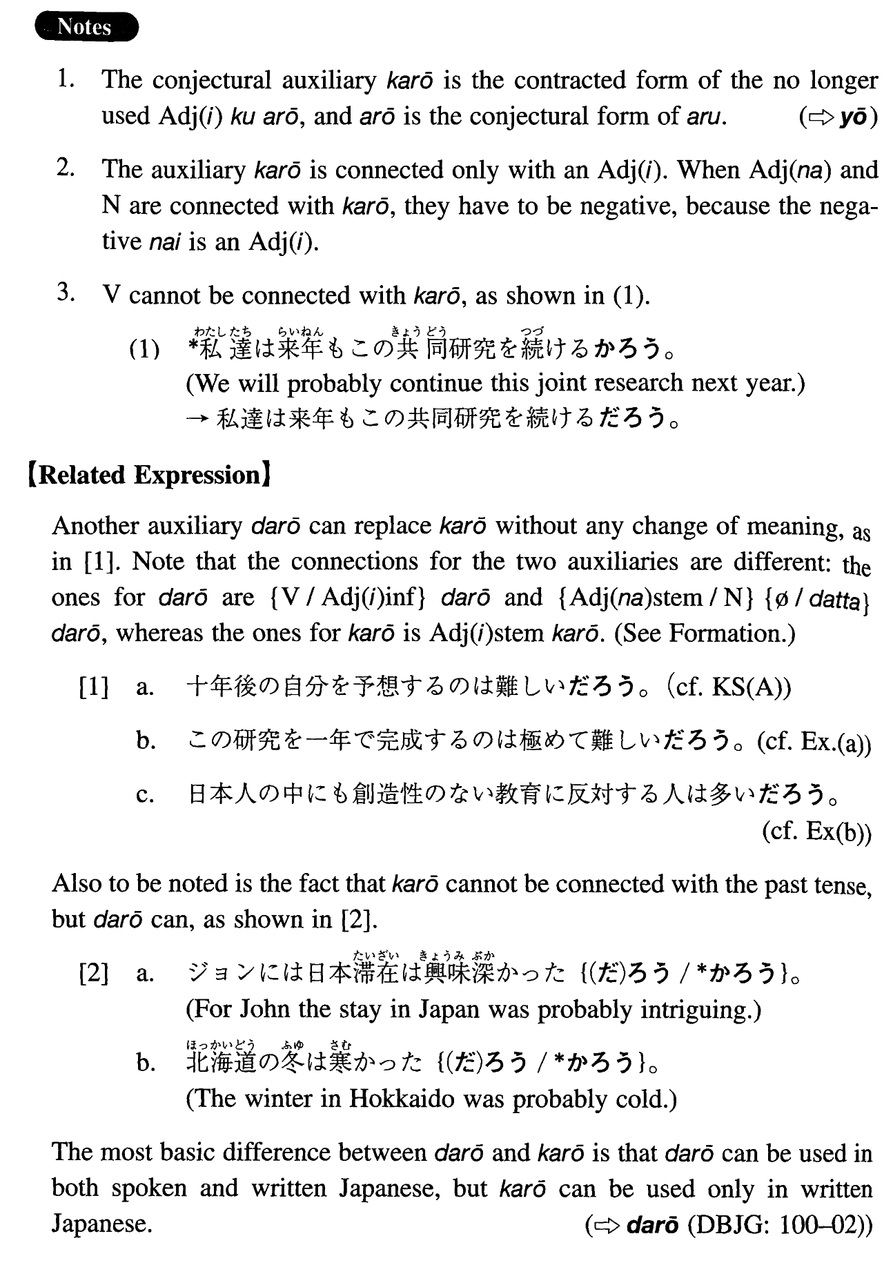 | (ii) {Adjective い stem く (は)/Adjective な stem/Noun} | なかろう | |