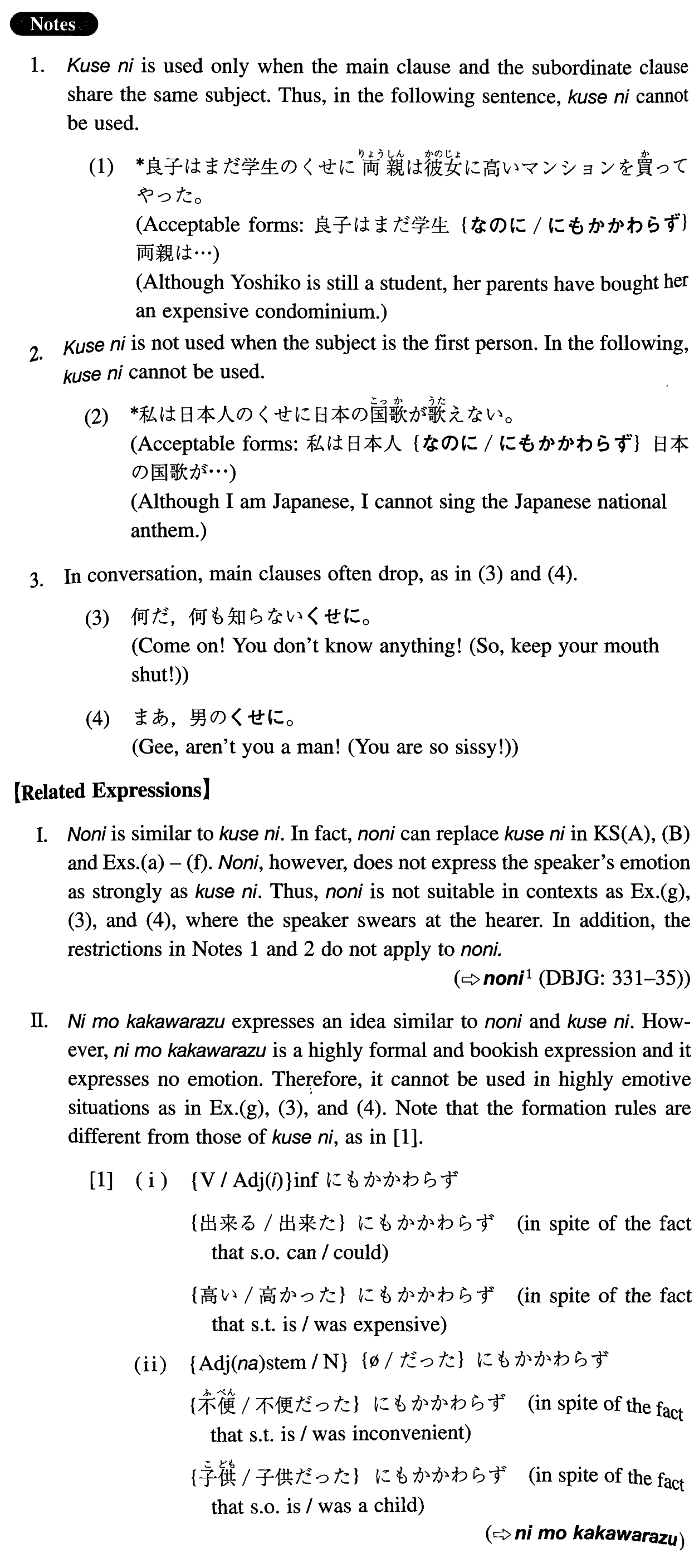 | {出来る/出来た} くせに | Although ~ can/could | |