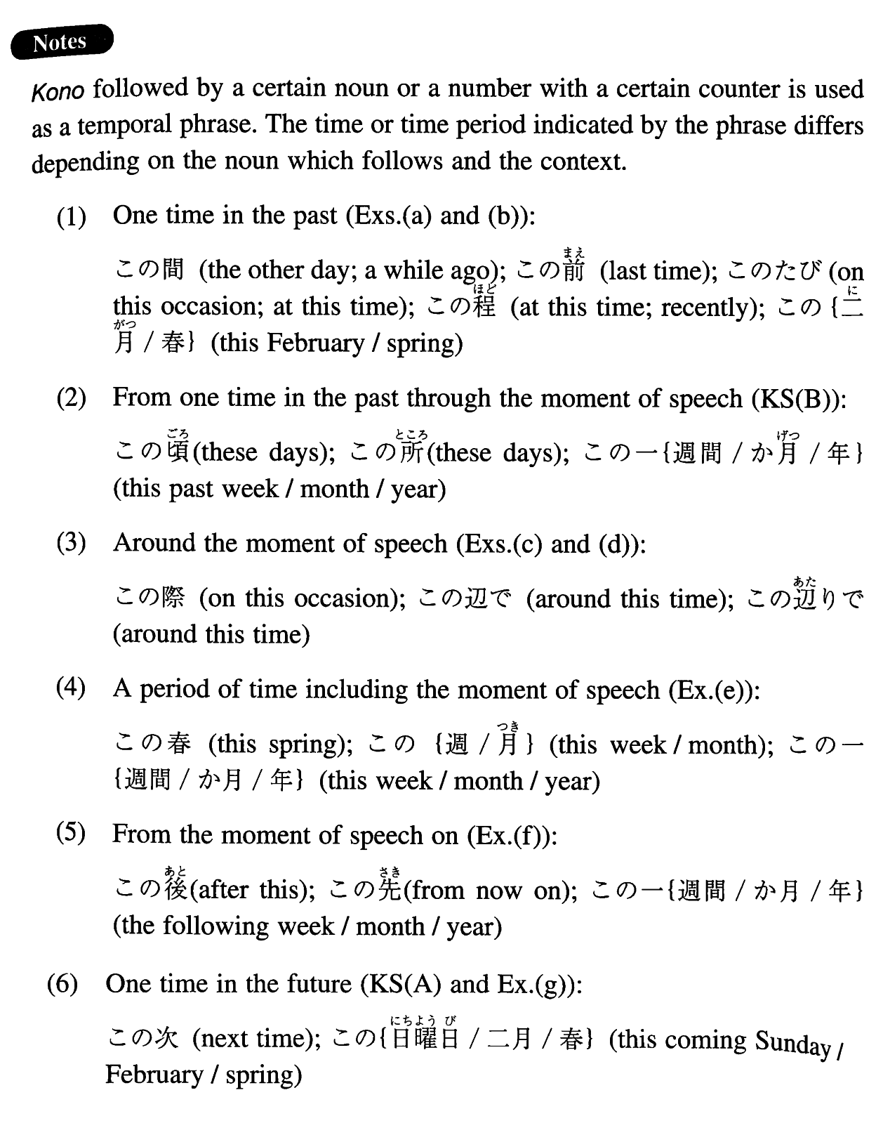 A demonstrative adjective which indicates a time or time period around the moment of speech.