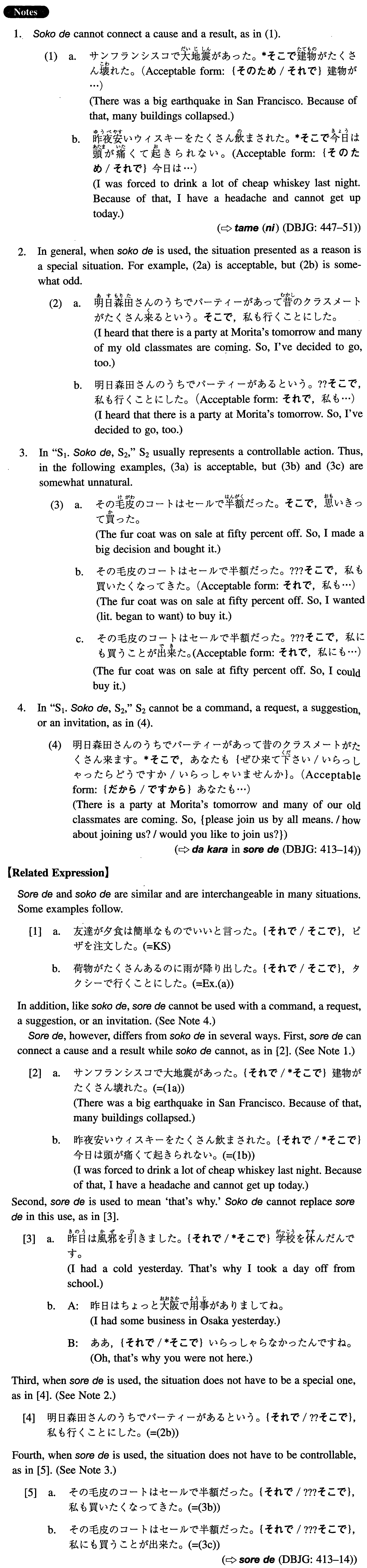 A conjunction which connects a situation presented as a reason and an action taken because of that situation