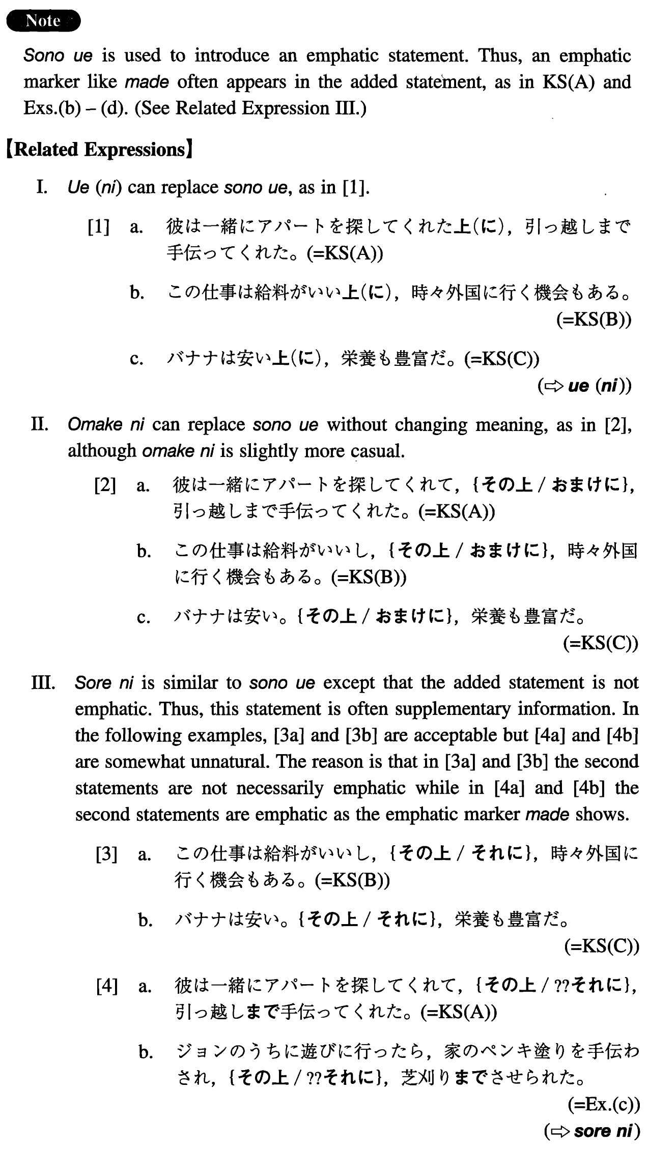 | (i) {V/Adjective/Noun+Copula}て | その上 | |