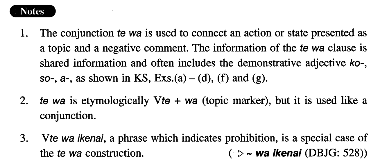 A conjunction which presents an action/state as a topic about which a negative comment is given.