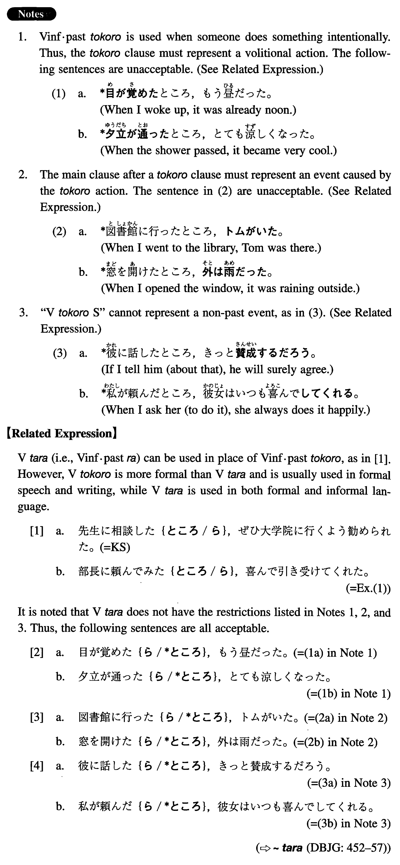 A dependent noun which is used to express the idea that when someone did something, something took place as the result.