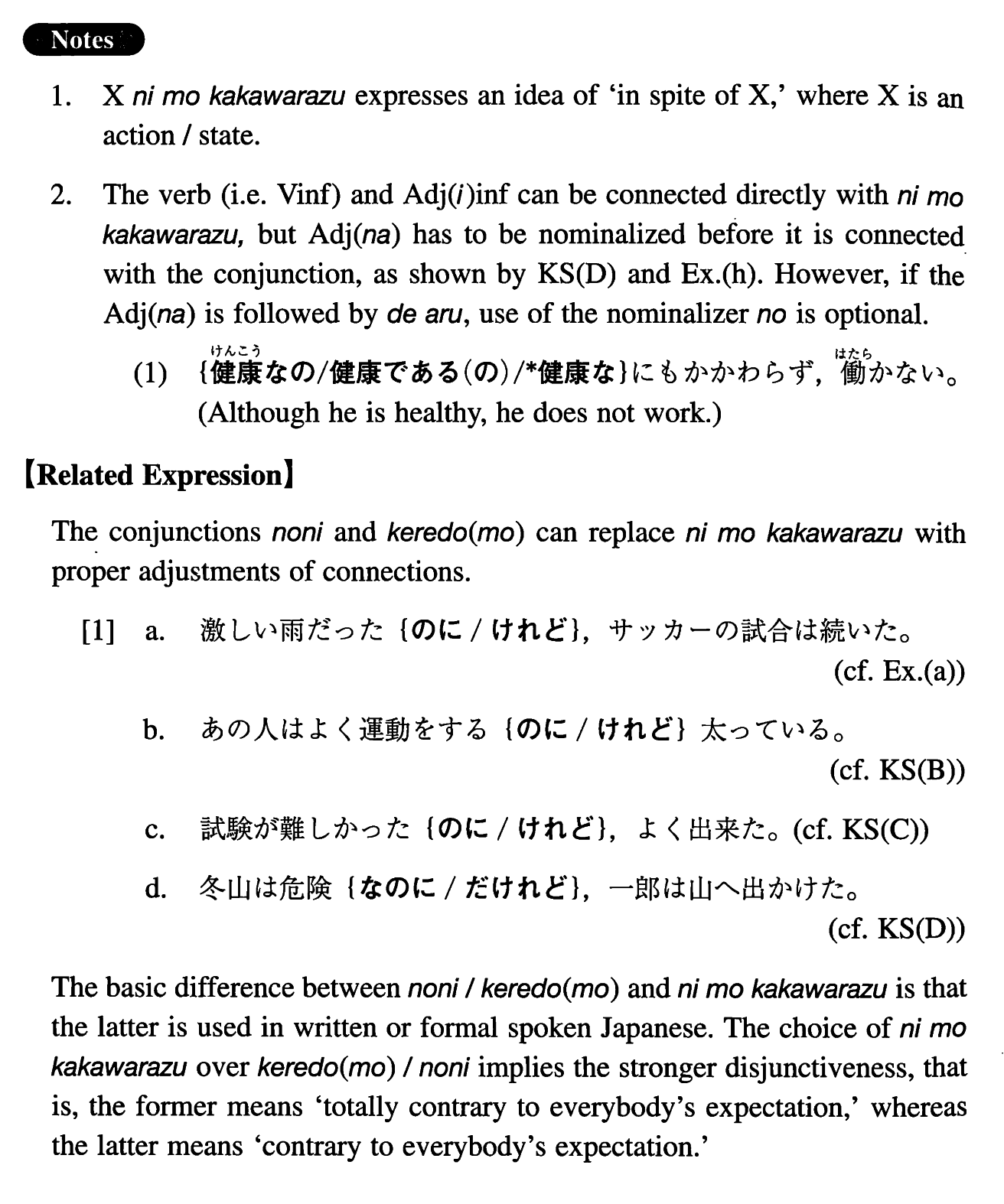 | (iii) Adjective い informal (の) | にもかかわらず | |