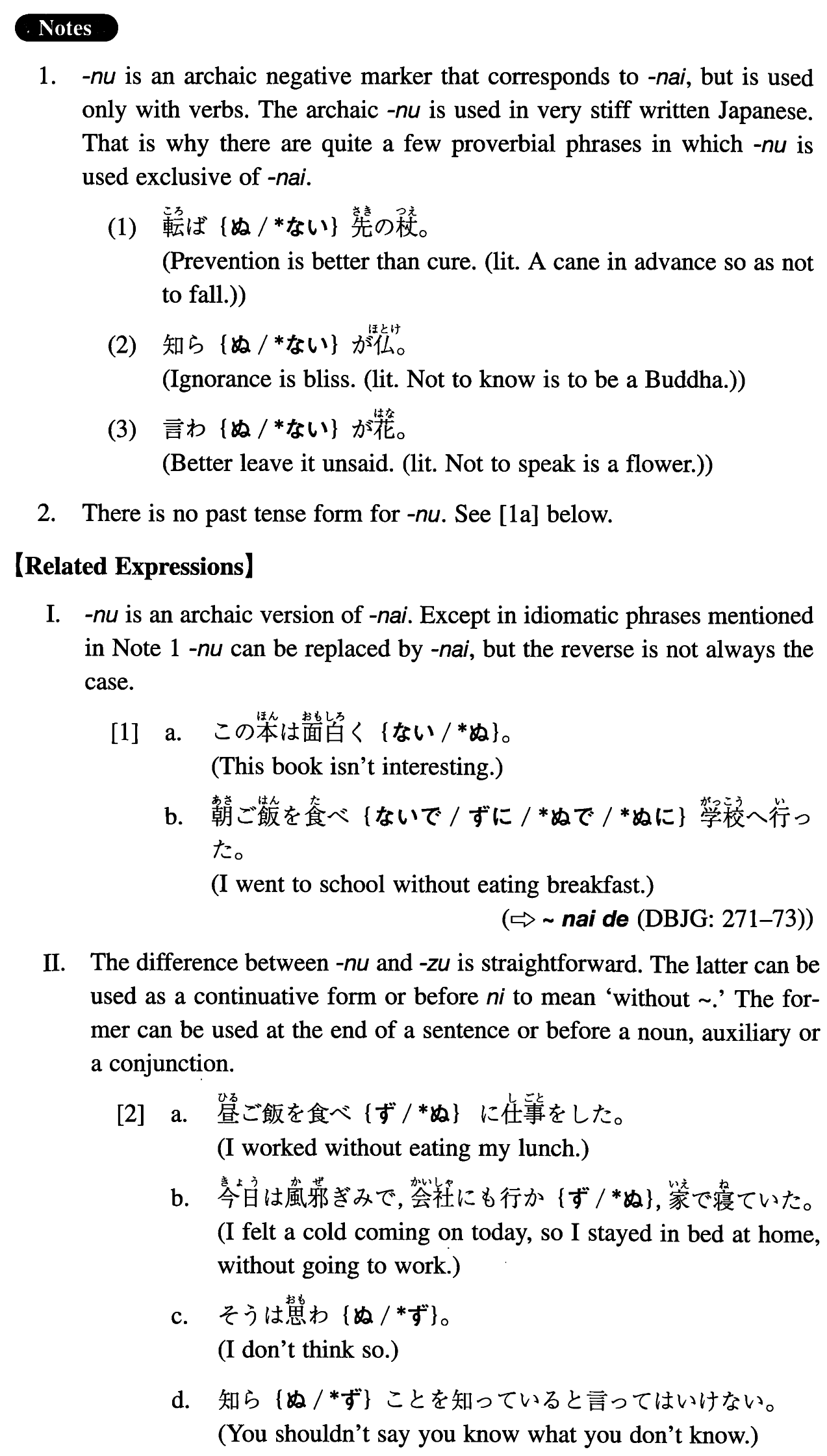 | Vnegative | ぬ (Noun/Auxillary) | |