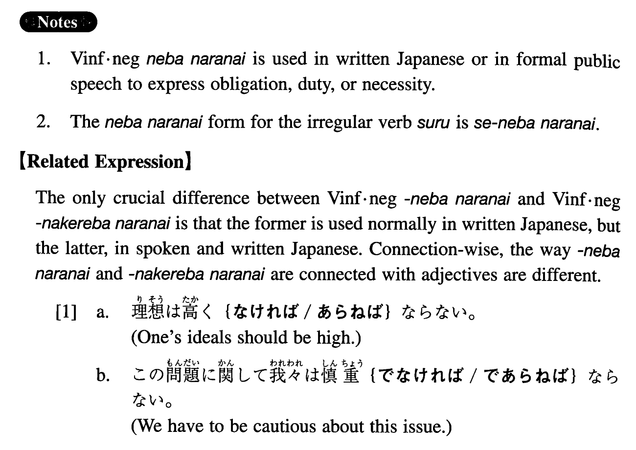 | Vinformal negative | ねばならない | |