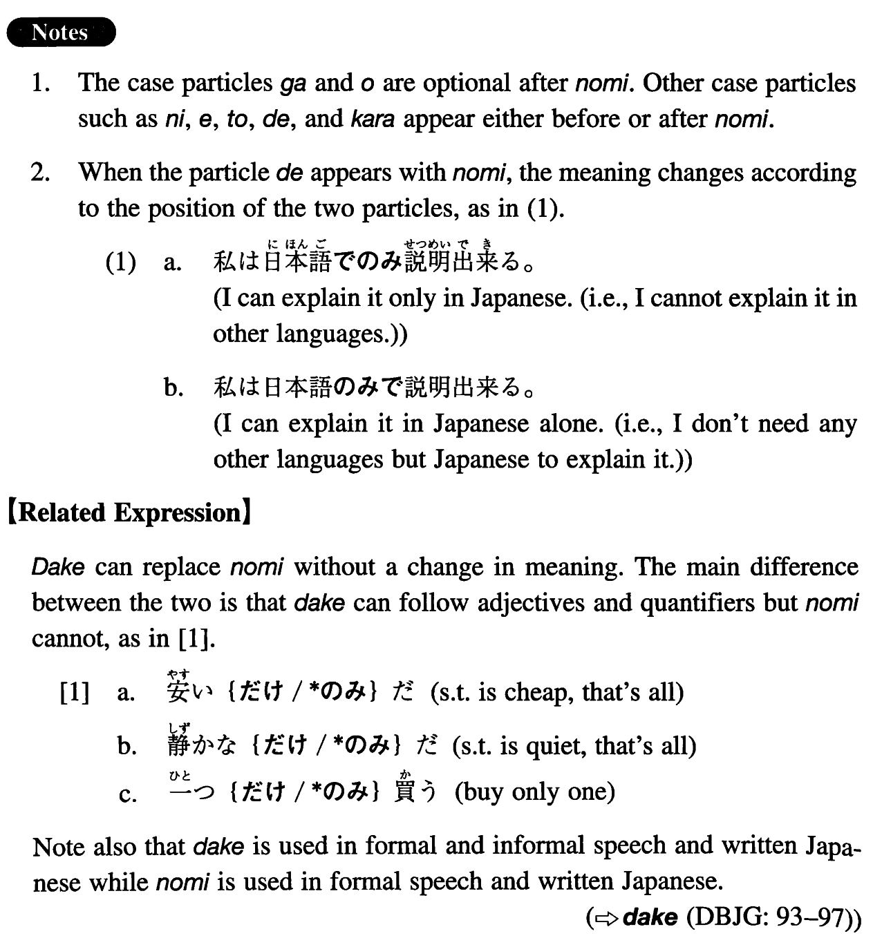 | (ii) Noun | {Particle のみ/のみ Particle} | |