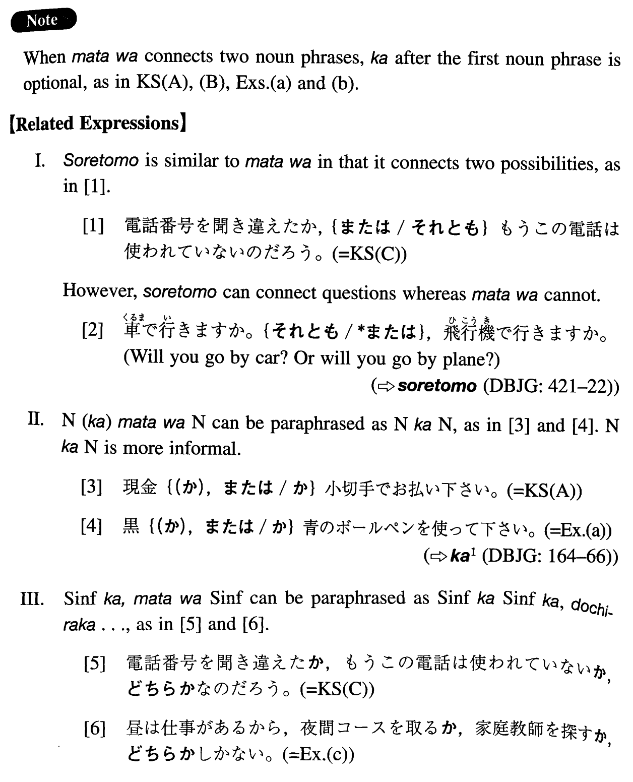 | 日本語(か)、または語英語 | Either Japanese or English | |