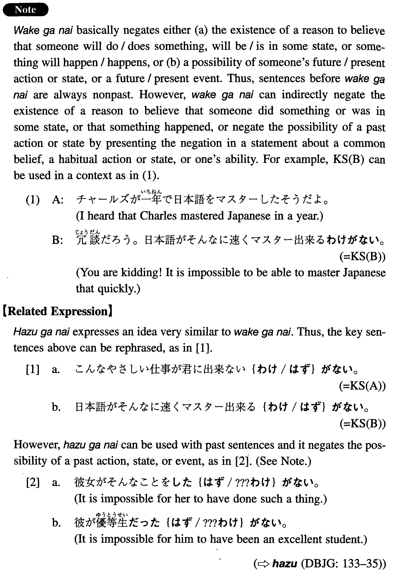 | (i) {V/Adjective い}informal nonpast | わけがない | |