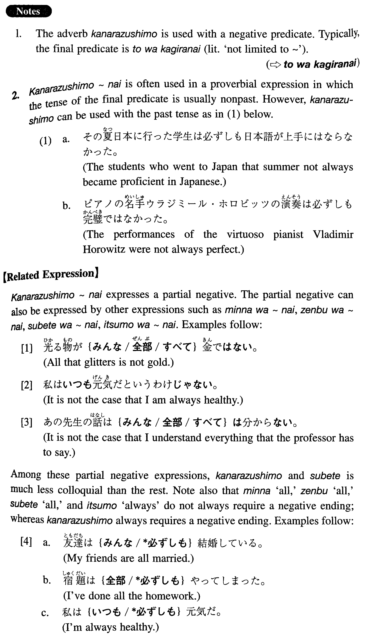 | 必ずしも{静か/先生}ではない | Something is not always quiet/someone is not always a teacher |