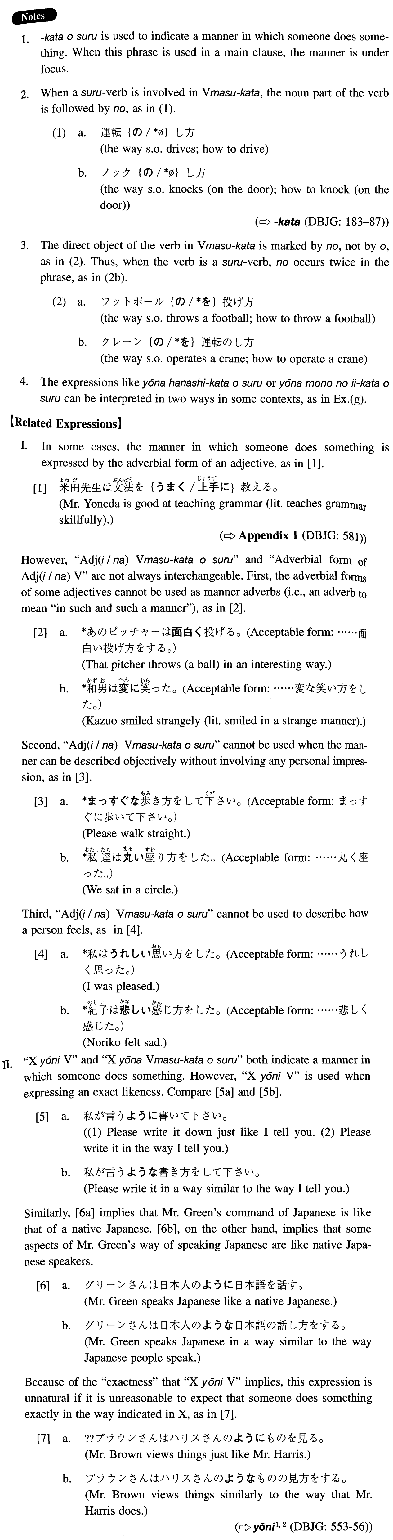 | (i) | {Adjective い informal/Adjective な stem な/Vinformal} + (Noun の) +Vます方をする | |