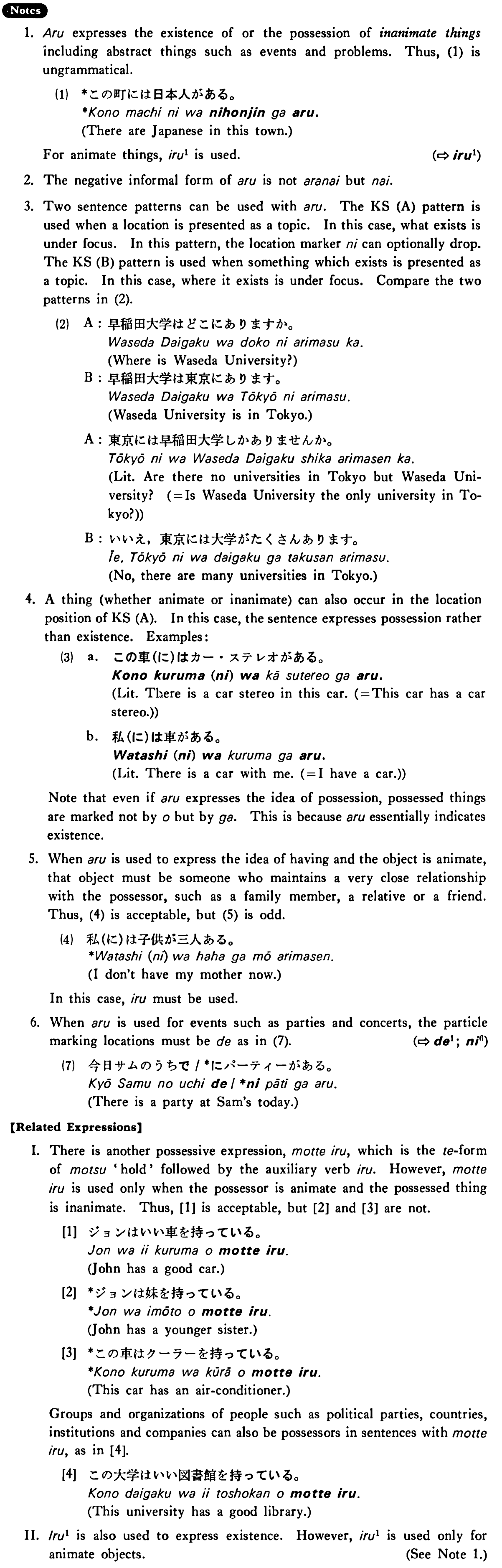 II. いる1 is also used to express existence. However, いる1 is used only for animate objects. (See Note 1.)