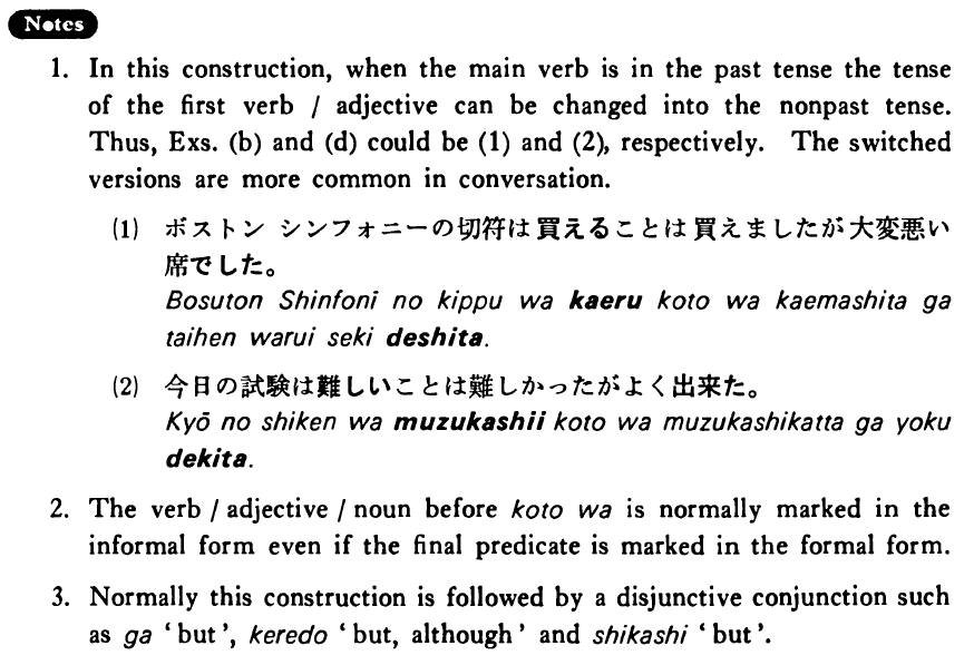 3. Normally this construction is followed by a disjunctive conjunction such as が 'but', けれど 'but, although', and しかし 'but'.