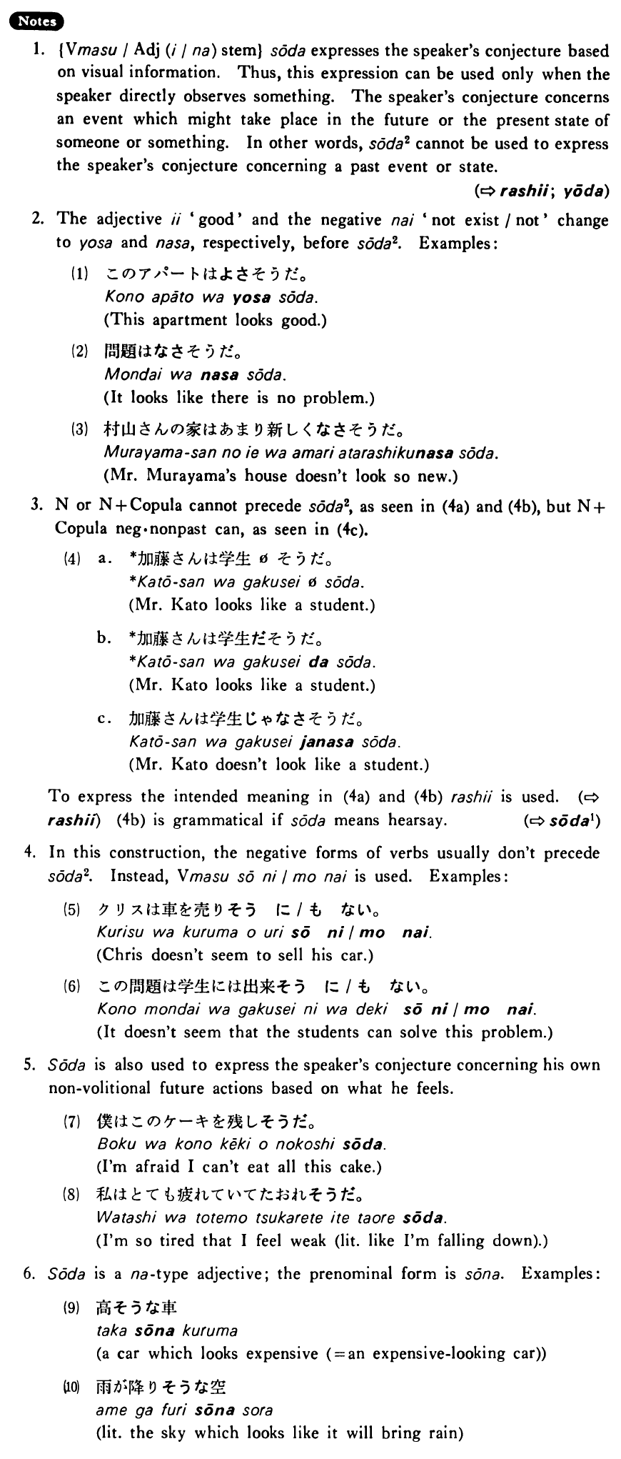 2. The adjective いい 'good' and the negative ない 'not exist/not' change to よそ and なさ, respectively, before そうだ2. Examples: