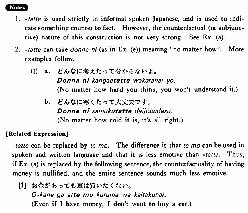 2. たって can take どんなに (as in Example (e)) meaning 'no matter how'. More examples follow.