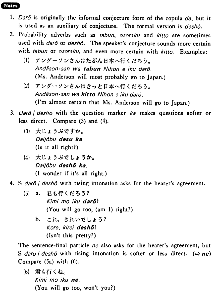 4. Sentence だろう/でしょう with rising intonation asks for the hearers agreement.