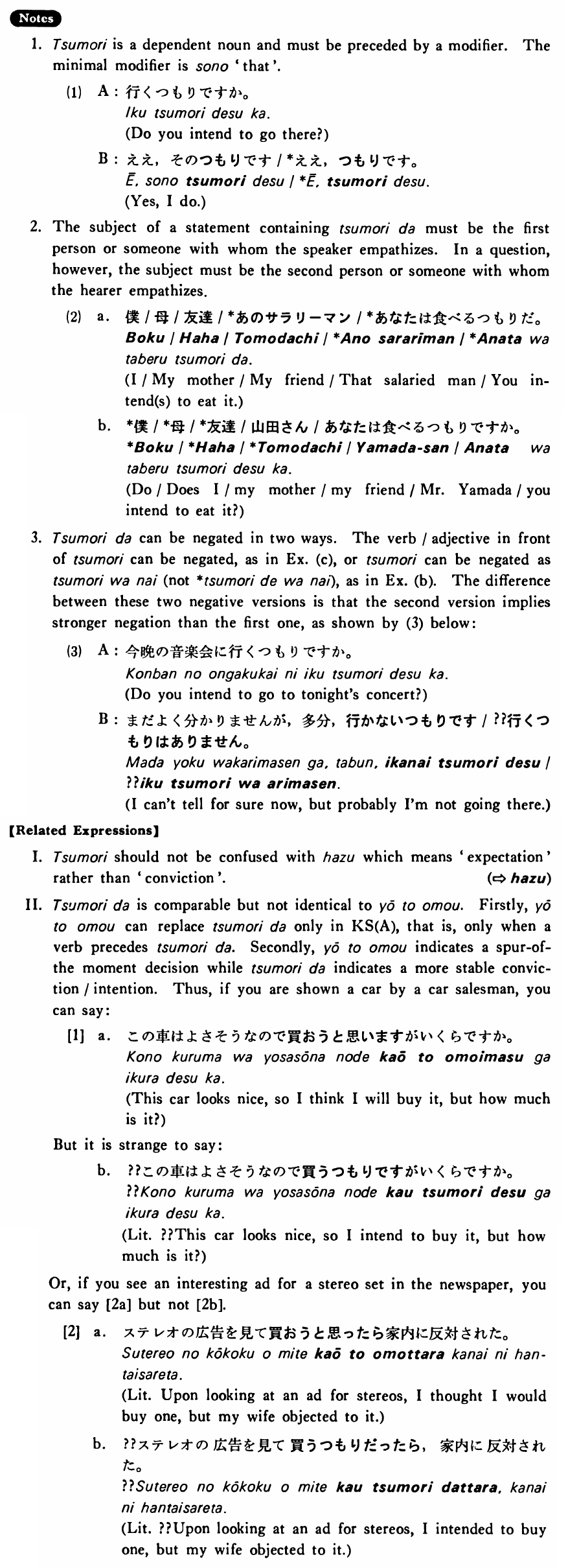 | (i) Vinformal | つもりだ | |