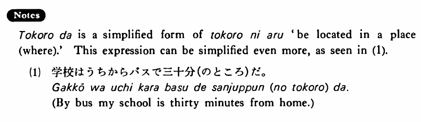 ところだ is a simplified form of ところにある 'be located in a (where).' This expression can be simplified even more, as seen in (1).