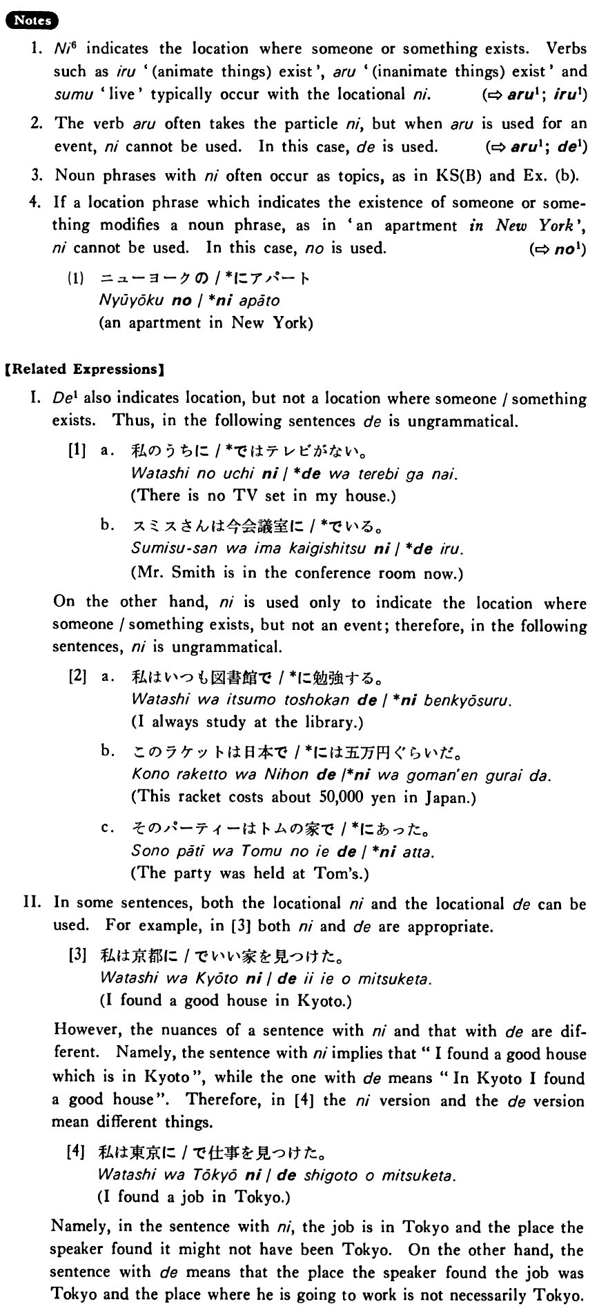 11. In some sentences, both the locational and the locational で can be used. For example, in [3] both and で are appropriate.