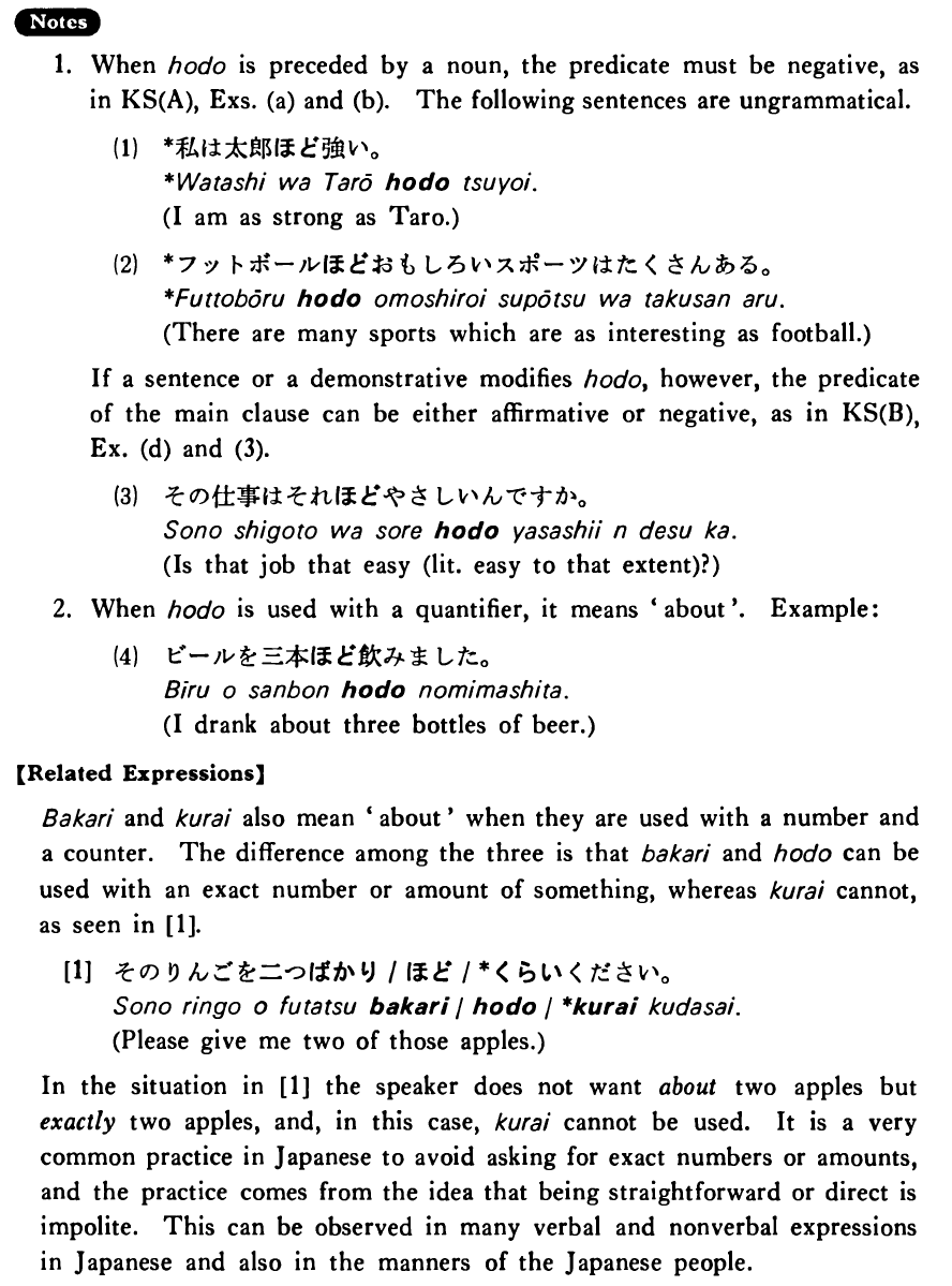 1. When ほど is preceded by a noun, the predicate must be negative, as in Key Sentence (A), Examples (a) and (b). The following sentences are ungrammatical.