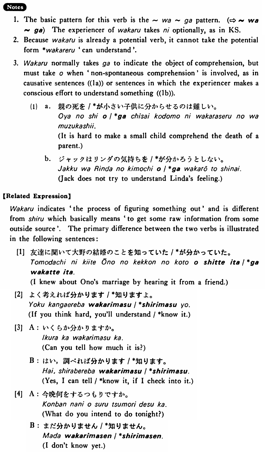 1. The basic pattern for this verb is the は~が pattern. (⇨ は~が) The experiencer of 分かる takes に optionally, as in Key Sentence.