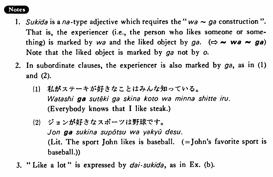 3. "Like a lot" is expressed by 大好きだ, as in Example (b).