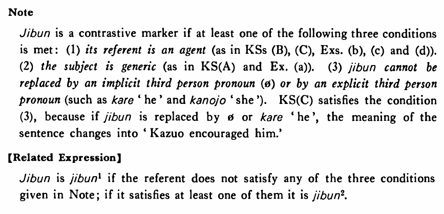 自分 is a contrastive marker if at least one of the following three conditions is met: